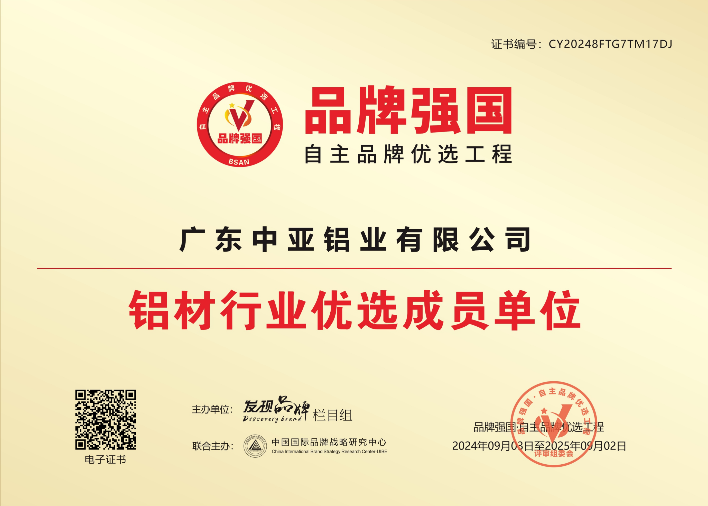 工程建設(shè)推薦產(chǎn)品證書-鋁合金建筑型材